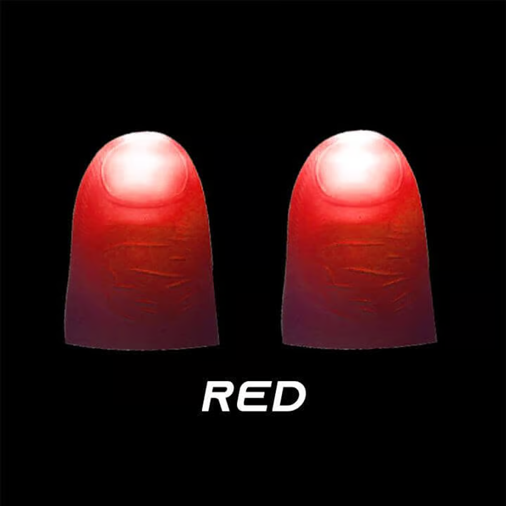 - Each soft plastic thumb tip comes with a built-in battery, switch and a bright red led light.